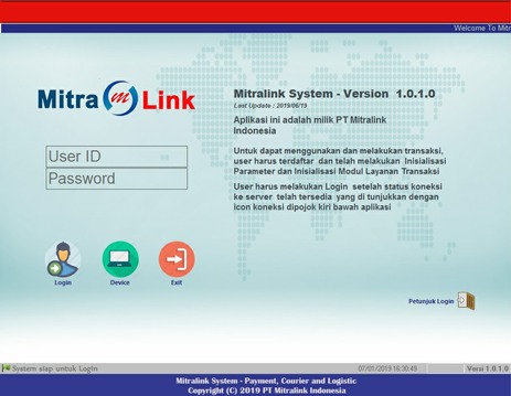Buka MitraLink_v1010 dengan tampilan login sbb :