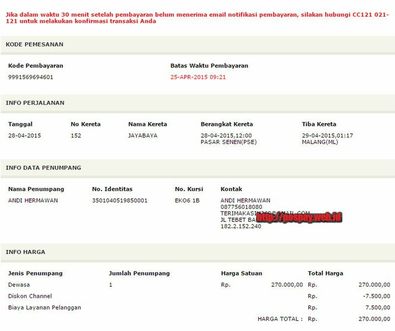 - Resi pembayaran selanjutnya bisa anda tukarkan dengan tiket kereta api di stasiun