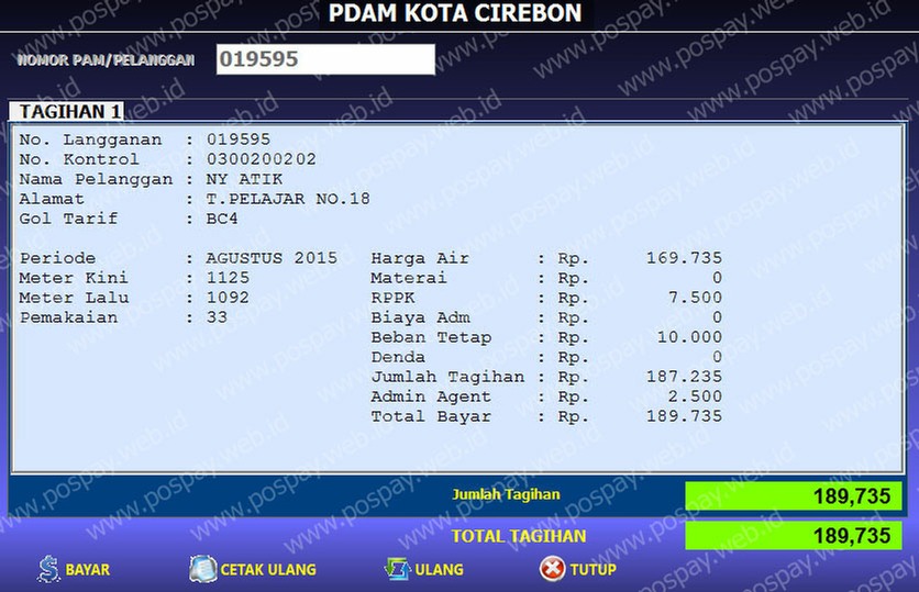 Contoh transaksi PDAM Kota Cirebon :